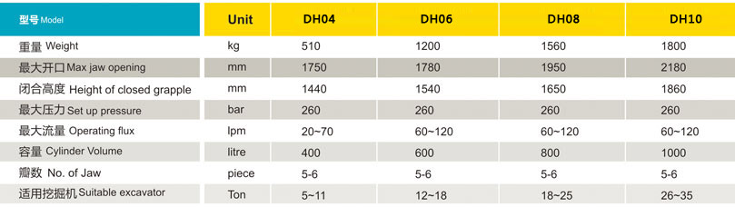 ◆ 東弘DH系列蓮花抓,采用特殊鋼材,質(zhì)地輕,耐磨性高;